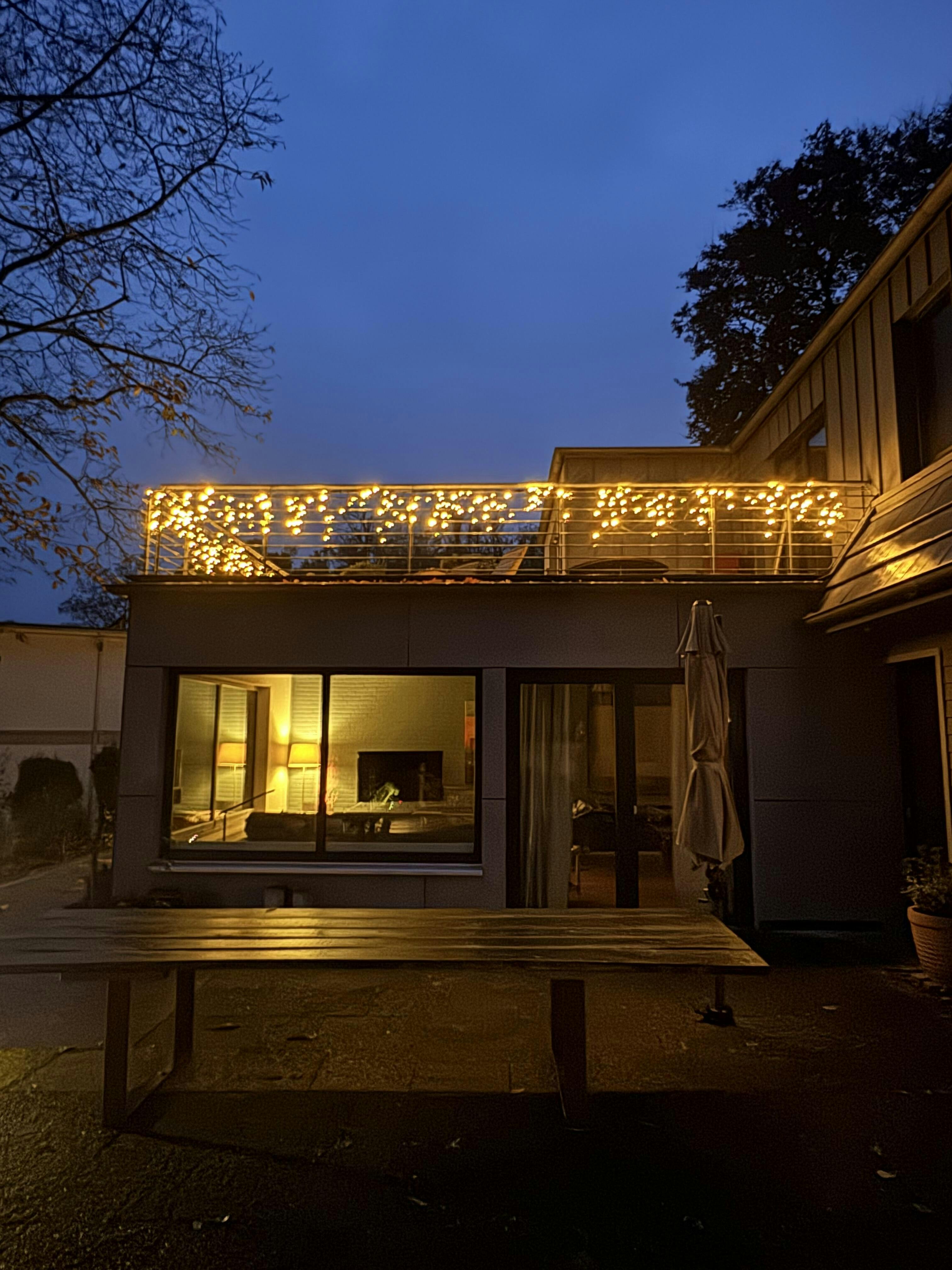 Diese hochwertige, erweiterbare Lichterkette mit Gummi-Kabeln und versiegelten LED-Lampen verspricht Langlebigkeit und Wasserdichtigkeit. Kompatibel mit allen Profi-Serie Produkten, ideal für Dachvorsprüngen, Balkonen, Pavillons, Pergolen, sowie für Straßen, Gebäude, Geschäfte als auffällige Dekoration.